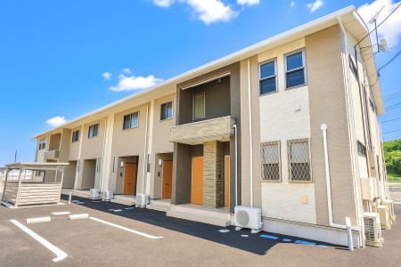 角住戸は1階2階で違う世帯がワンフロアで住まう「重層型」を配する賃貸住宅が完成しました。