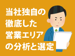- 土地オーナー様を手当たり次第に訪問するような活動は行いません。当社の商品が確実に受注できるエリアを探すことから始め